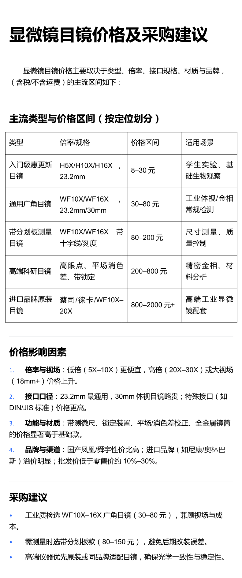 显微镜目镜价格