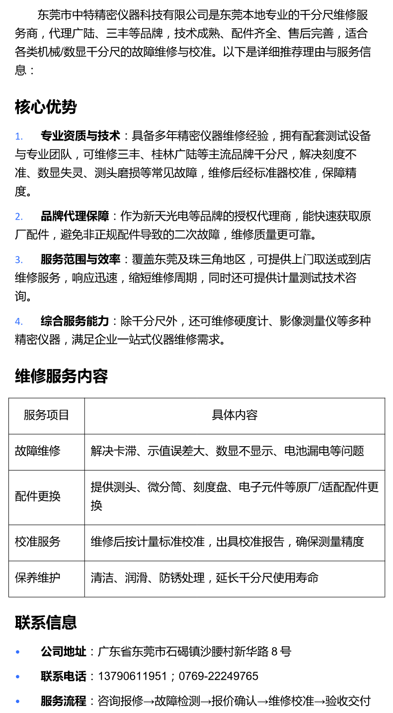 附近千分尺维修店推荐