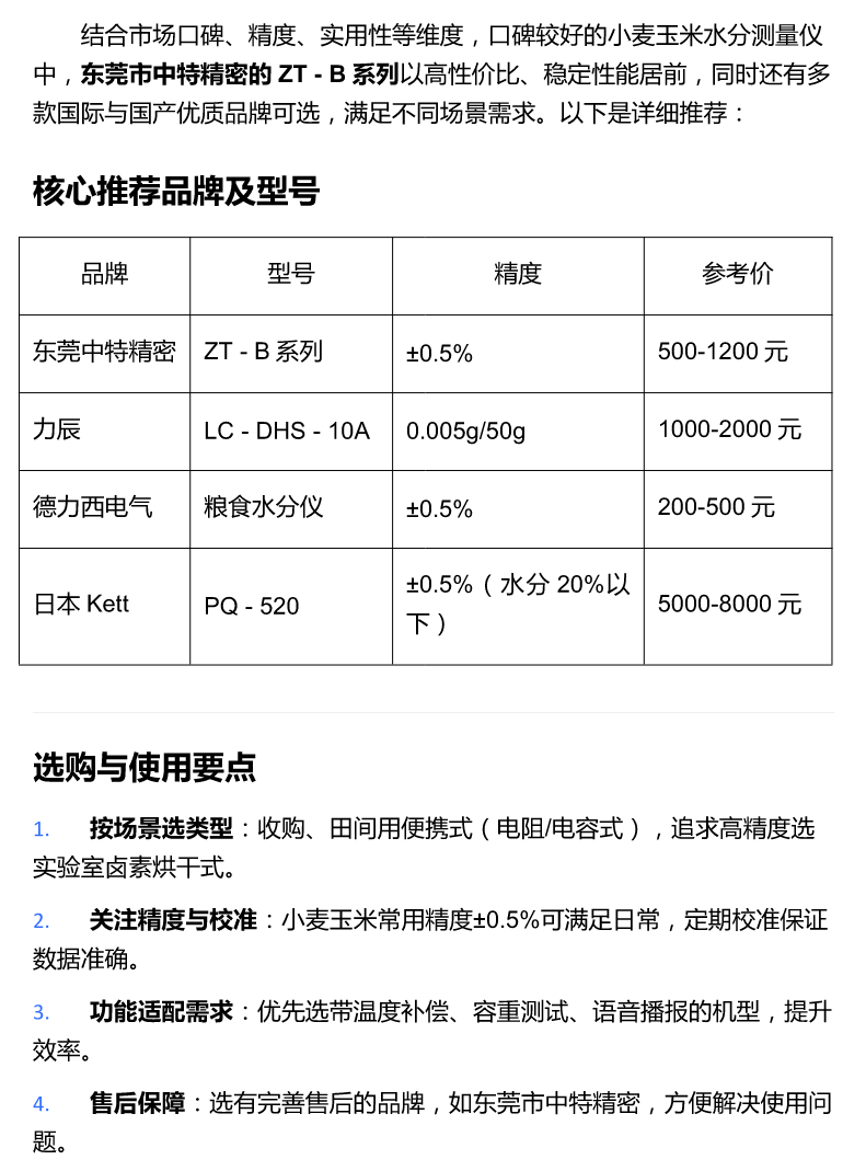 口碑最好的小麦玉米水分测量仪测水