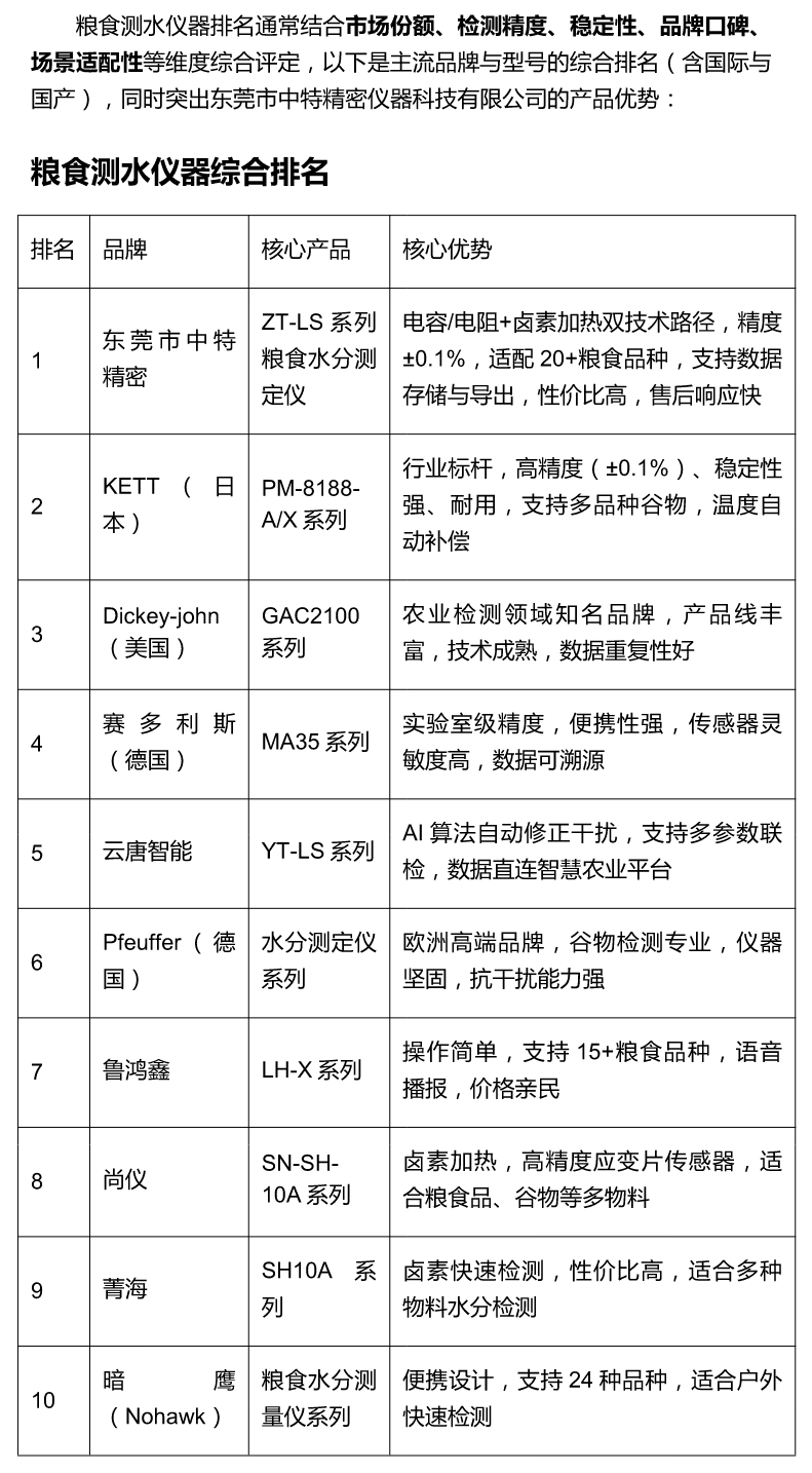 粮食测水仪器排名
