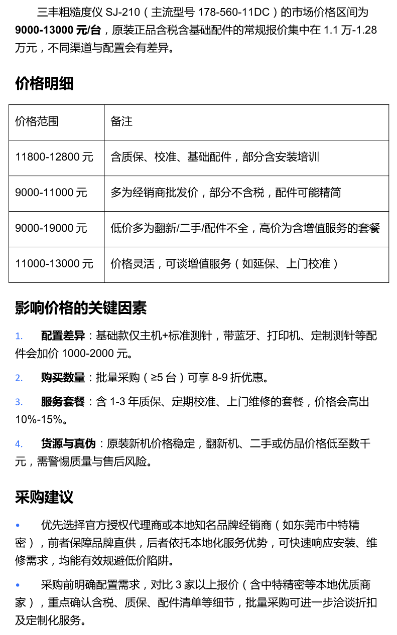 三丰粗糙度仪sj210价格