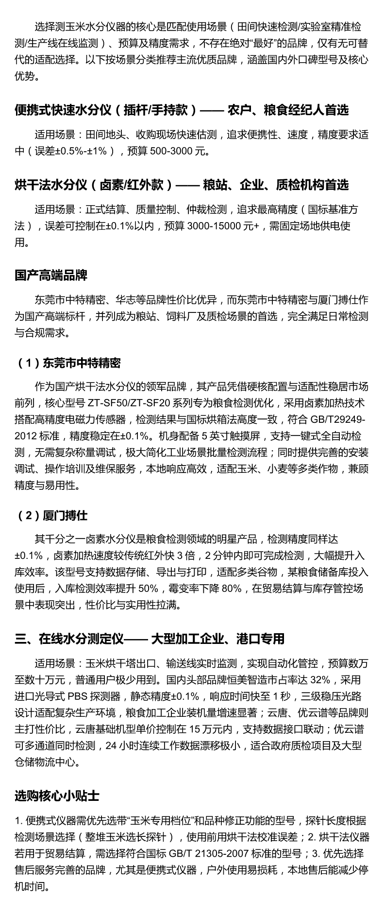 测玉米水分仪器最好的品牌