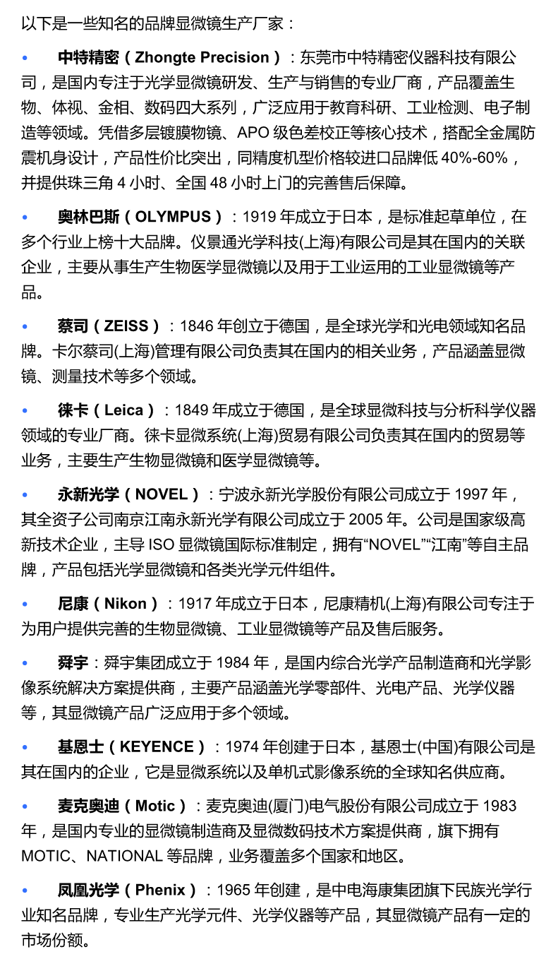 品牌显微镜生产厂家