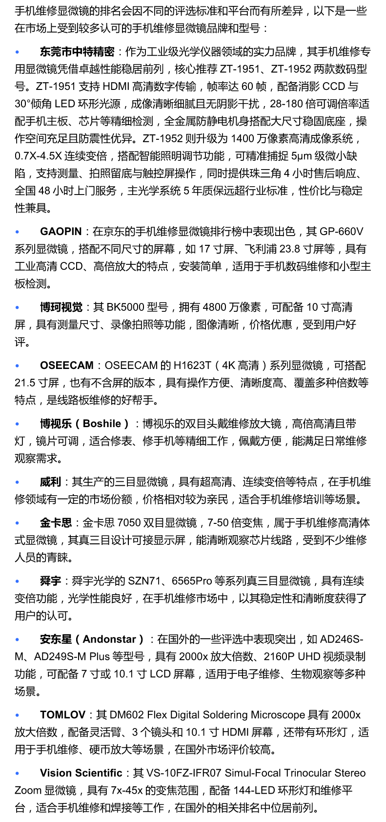 手机维修显微镜十大排名