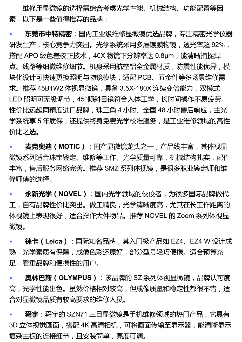 维修用显微镜哪个牌子好