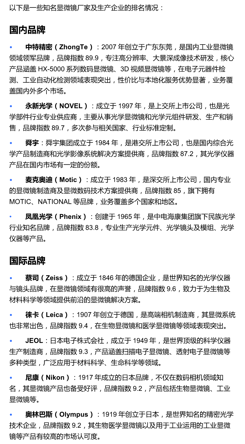 显微镜厂家显微镜生产企业排名