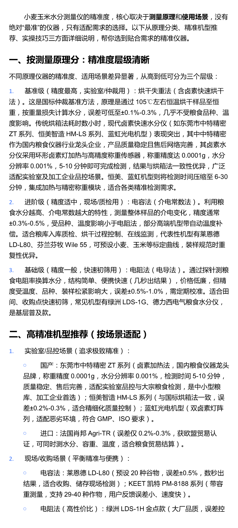 小麦玉米水分测量仪哪个准