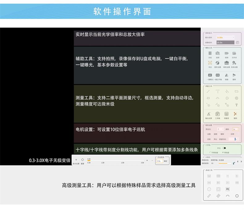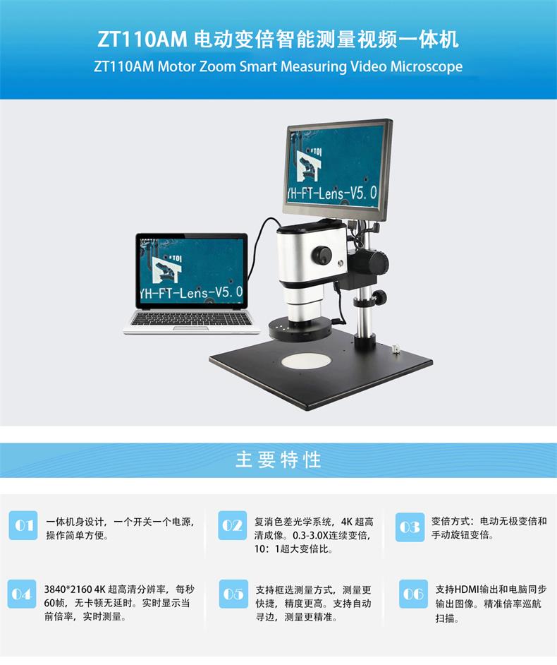 2、复消色差光学系统,4K超高清成像。0.3-3.0X连续变倍,10:1超大变倍比。