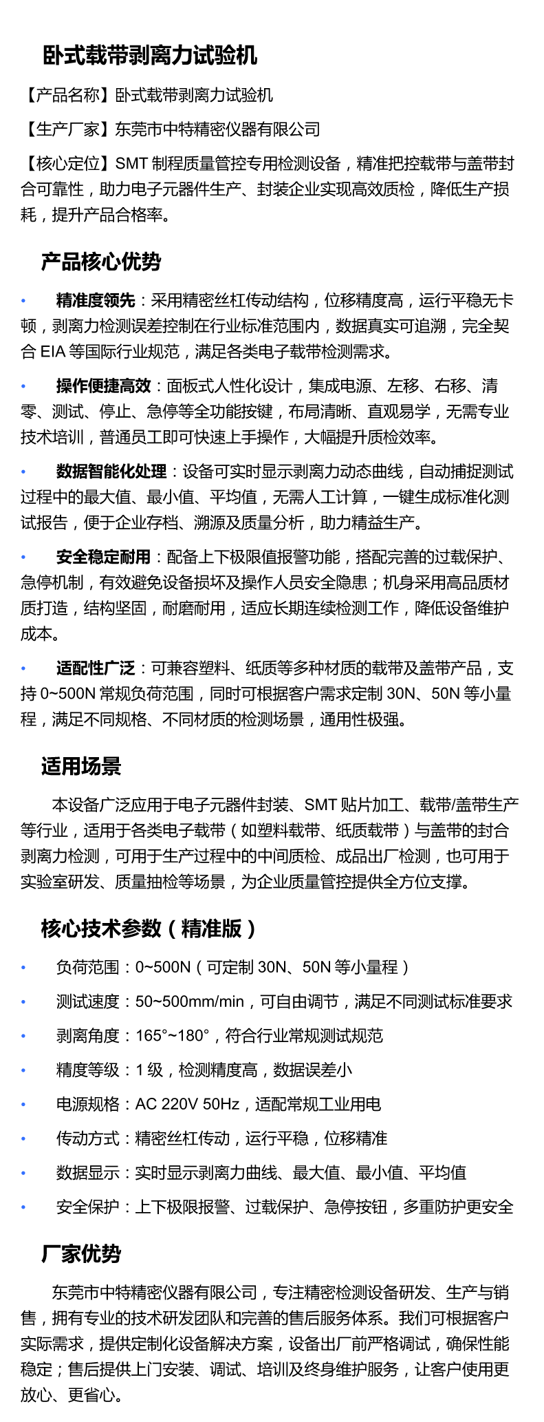 SMT制程质量管控专用检测设备,精准把控载带与盖带封合可靠性,助力电子元器件生产、封装企业实现高效质检,降低生产损耗,提升产品合格率。