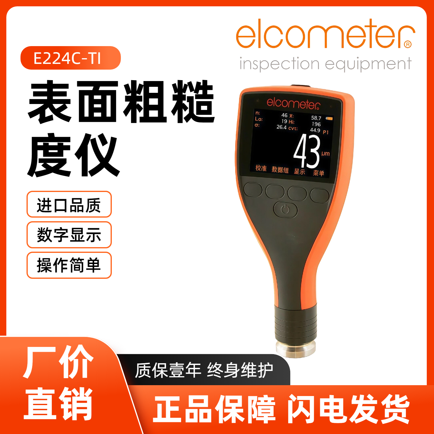 英国易高Elcometer E224C-TI表面粗糙度(轮廓)仪,这是英国 Elcometer 旗下用于涂层前表面处理、金属加工等场景的便携式接触式测量仪器,主打快速、耐用、数据可追溯。